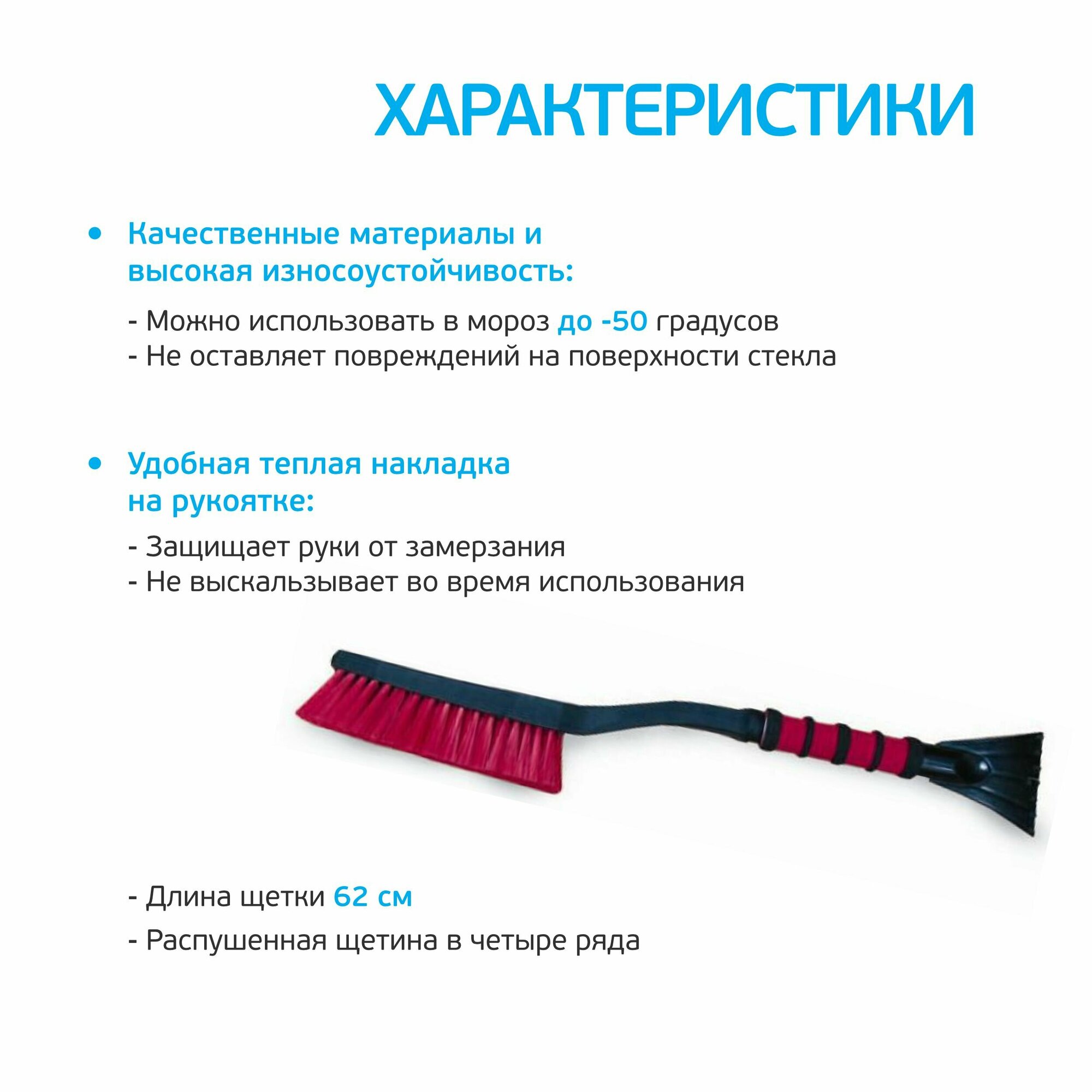 Щетка-скребок для снега 62 cм мягкая ручка, распушенная щетина AVS WB-6318