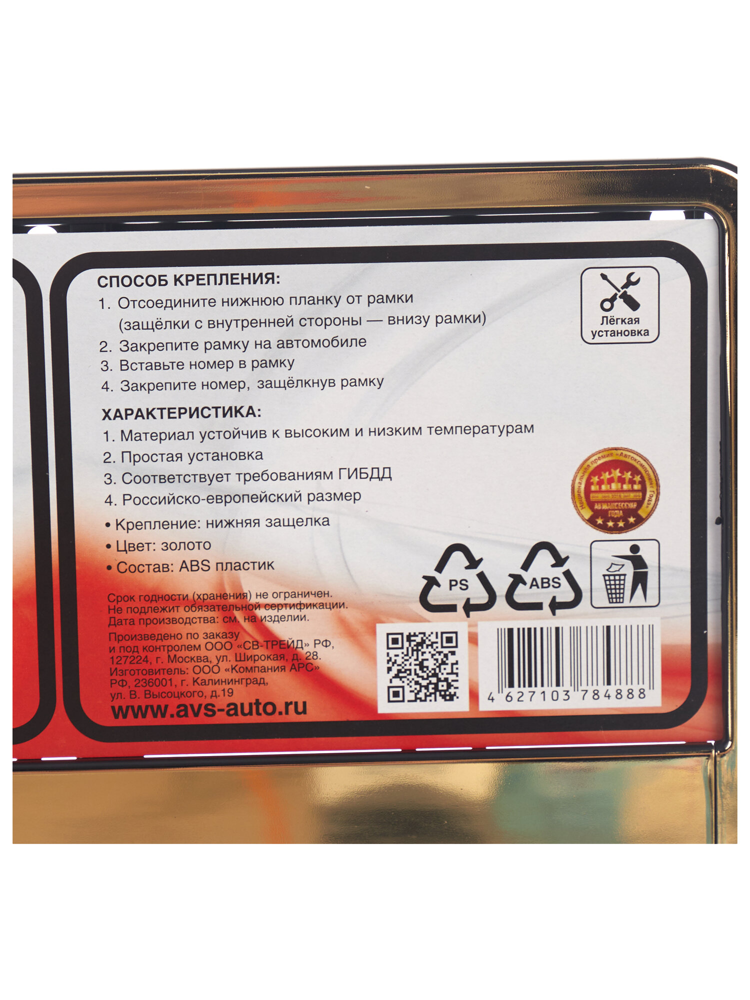 Рамка для автомобильного номера AVS RN-13 хром, золото, цвет золотистый, материал пластик информация: