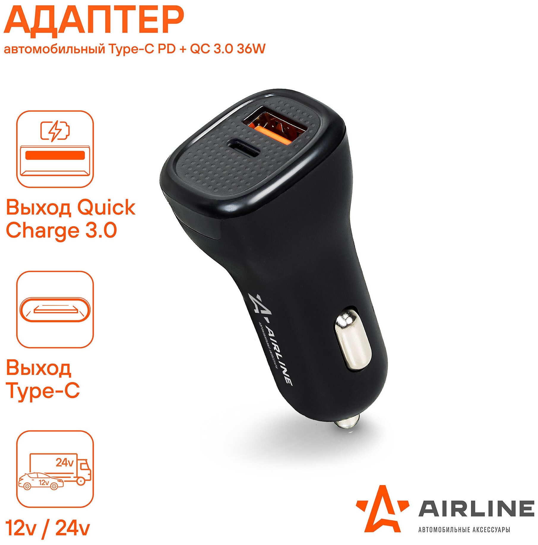Адаптер Автомобильный Type-C Pd + Qc 3.0 36Вт, 12/24В Ach-Cqc3 AIRLINE арт. ACHCQC3