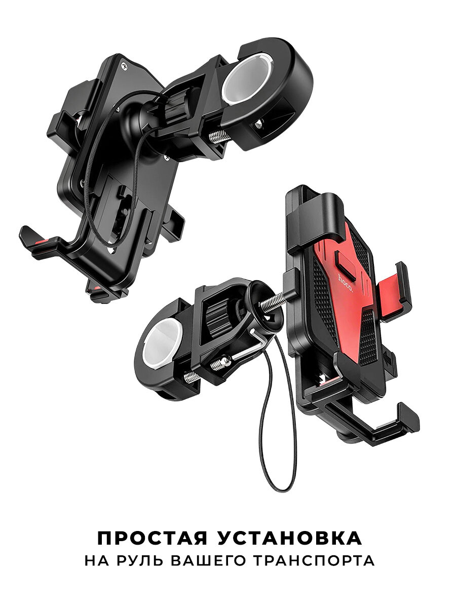 Держатель для телефона Hoco CA73 на руль велосипеда и мотоцикла, универсальный, черный/красный