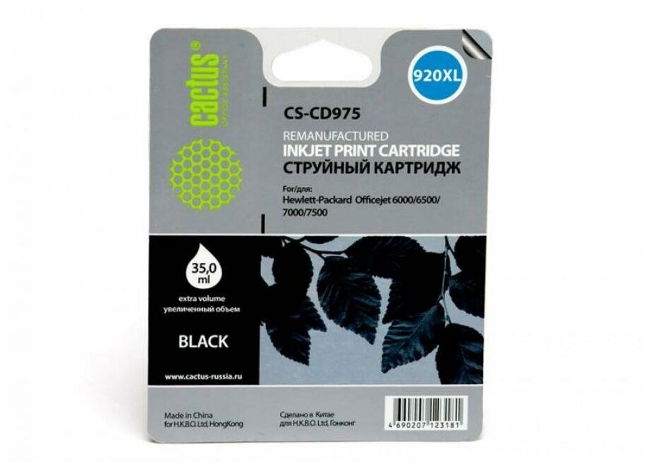 Картридж Cactus CS-CD975 №920XL, совместимый информация: