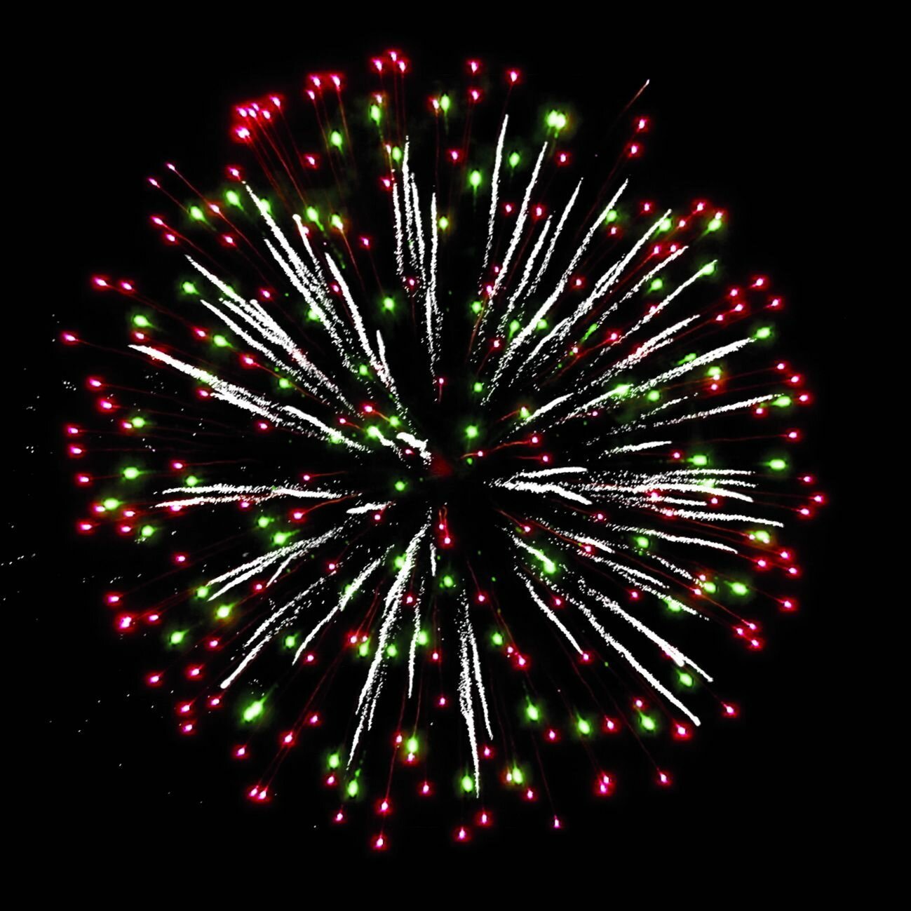 | Эффекты | Эффекты: 1. Разноцветные кометы разрываются сферами. 2. Серебряные форсы / красные и зеленые мерцающие огни. 3. Золотые форсы / зеленые и золотые мерцающие огни. 4. Зеленые огни. 5. Золотые форсы / красные и золотые мерцающие огни. 6. Золотые искристые форсы и красные огни. 7. Золотые искристые форсы и зеленые огни. 8. Красные / зеленые и серебряные мерцающие огни. 9. Серебряные форсы / красные и трещащие серебряные огни. 10. Серебряные форсы / зеленые и золотые трещащие огни. |