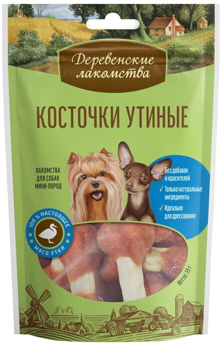 Деревенские Лакомства косточки утиные для собак малых пород 10 шт х 55 г информация: