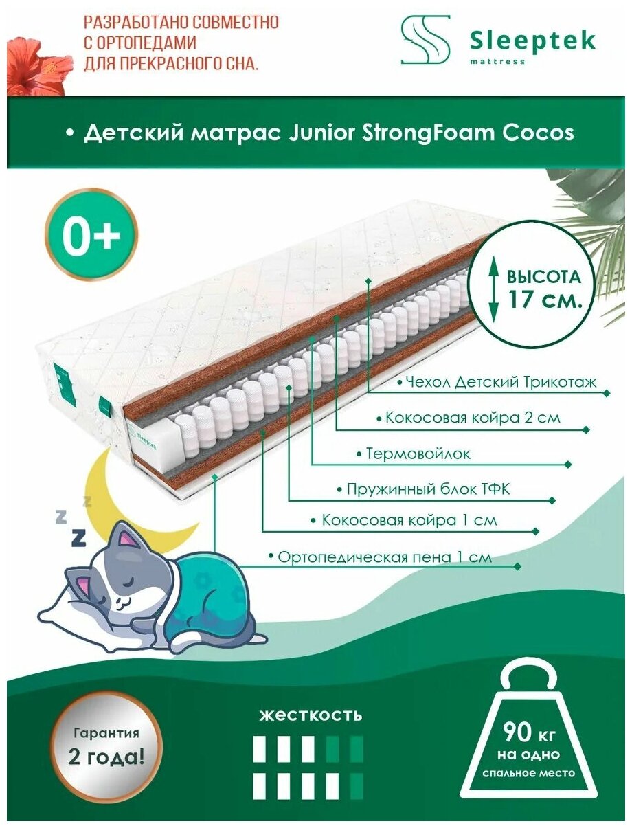 Детский матрас Sleeptek Junior StrongFoam Cocos 80х160 информация: