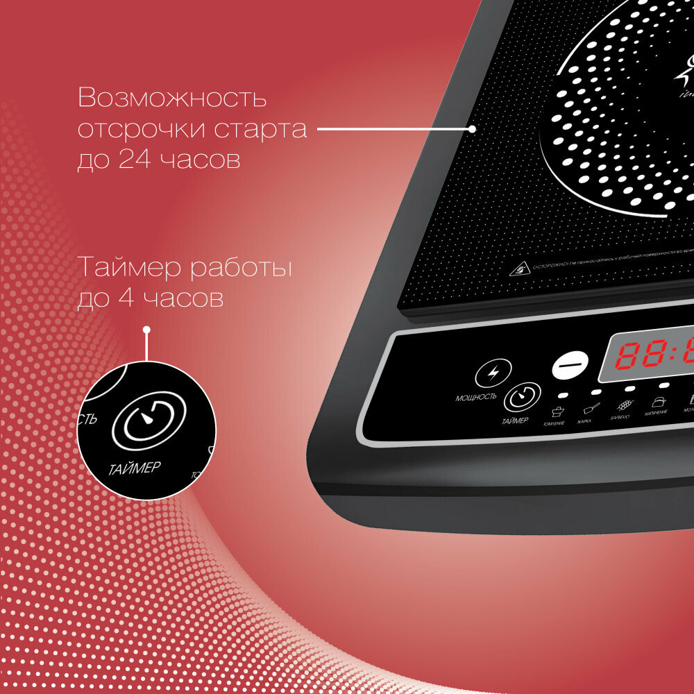 Индукционная плита настольная электрическая VLK Palermo-7726 / 2000 Вт / до 10 кг / до 240 градусов / 7 автоматических программ 3 210 ₽