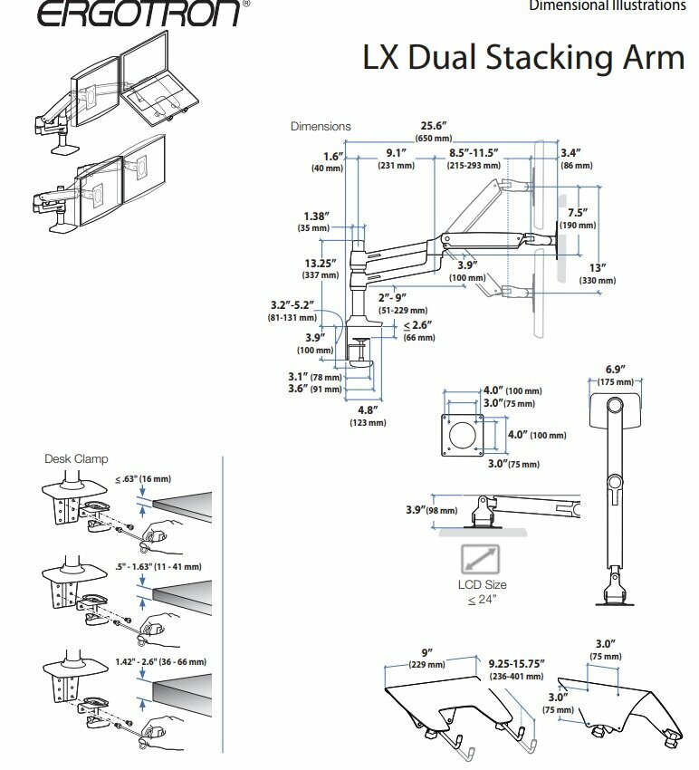 Отзывы на Ergotron LX Dual Stacking Arm Ergotron 45-248-026 крепление для двух мониторов или для монитора и ноутбука(металлик)