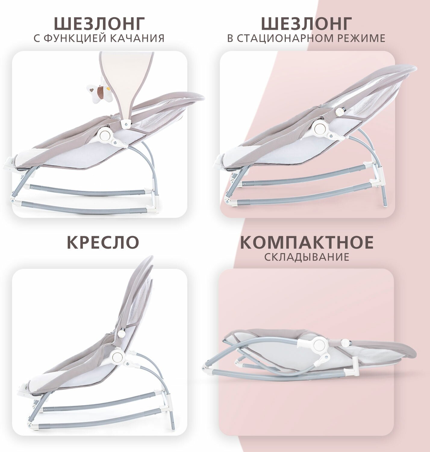 Шезлонг качалка для новорожденного музыкальный 6917 серо-розовый