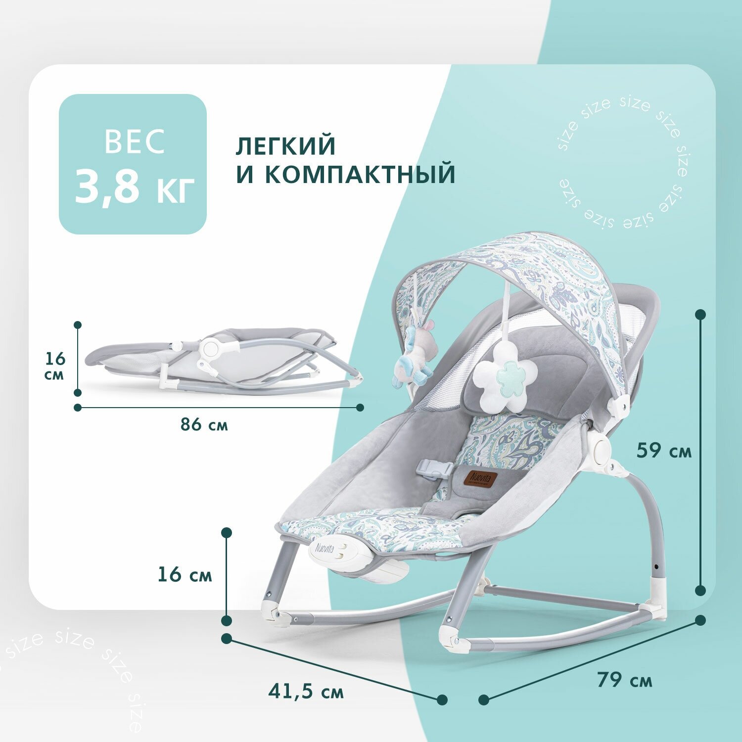 Шезлонг с функцией качения Nuovita Mese (Piccolo/Малыши) 6 099 ₽