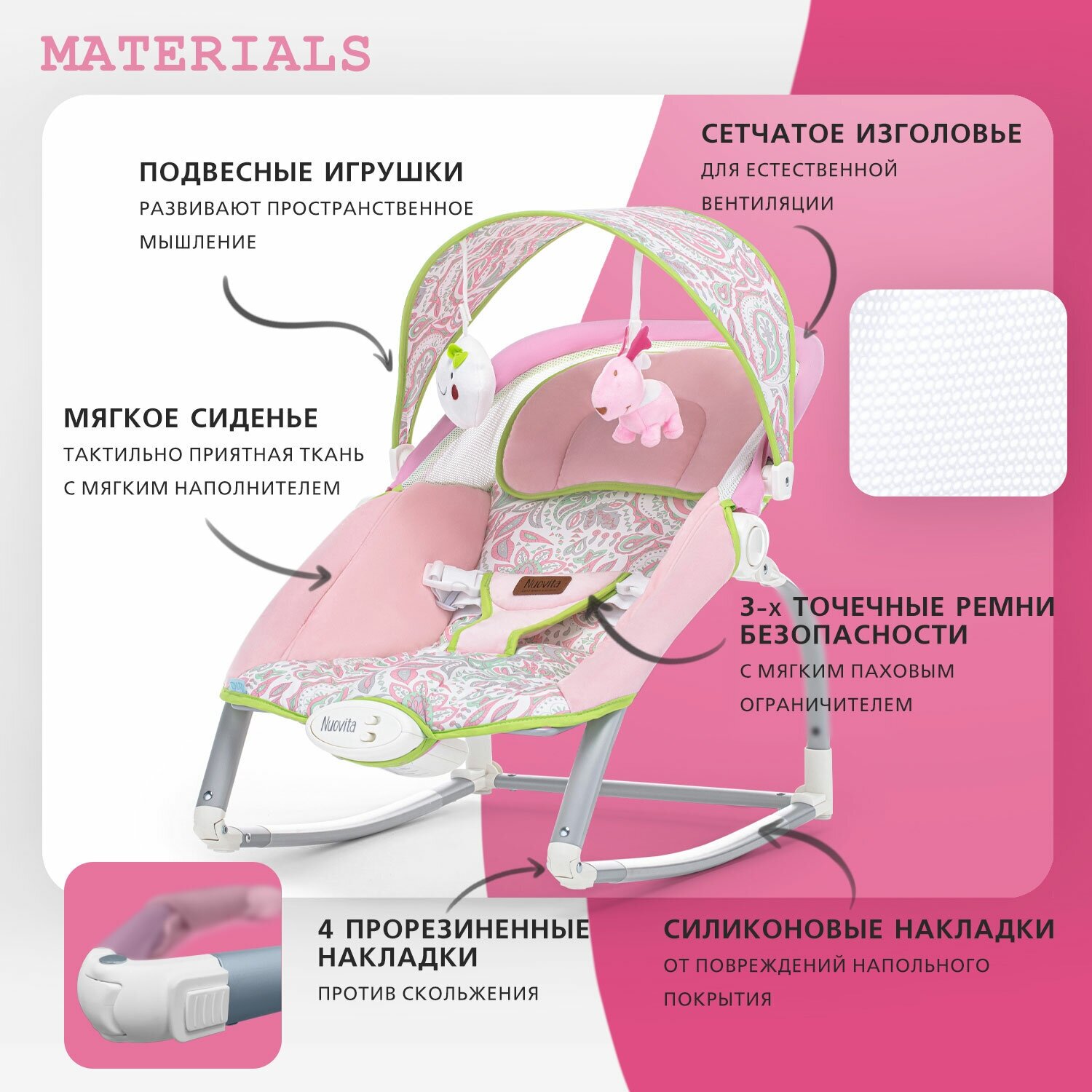 Отзывы на Шезлонг с функцией качения Nuovita Mese (Rosa sonno/Розовый сон)