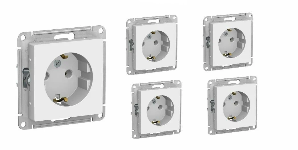 10 цен на Розетка с заземлением Schneider Electric/Systeme Electric AtlasDesign 16А, механизм, белый ATN000143 (комплект 5 шт.)