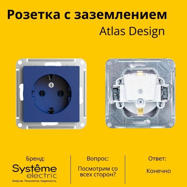 Отзывы на Розетка электрическая Systeme Electric Atlas Design с заземлением, 16А Аквамарин ATN001143 - 6 шт.