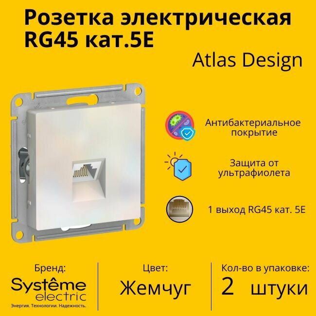 10 цен на Розетка компьютерная 1xRJ45 Cat.5 ATLASDESIGN, жемчуг | код. ATN000483 | Schneider Electric (2шт.в упак.)