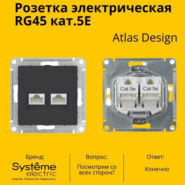 Отзывы на Розетка двухместная компьютерная электрическая Systeme Electric Atlas Design RJ45 кат.5E, Карбон ATN001085 - 2 шт.