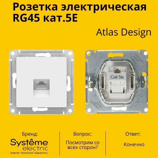 Розетка одноместная компьютерная электрическая Systeme Electric Atlas Design RJ45 кат.5E, Белый ATN000183 - 10 шт. информация: