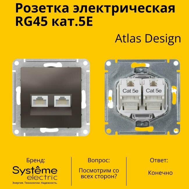 Отзывы на Розетка двухместная компьютерная электрическая Systeme Electric Atlas Design RJ45 кат.5E, Мокко ATN000685 - 5 шт.