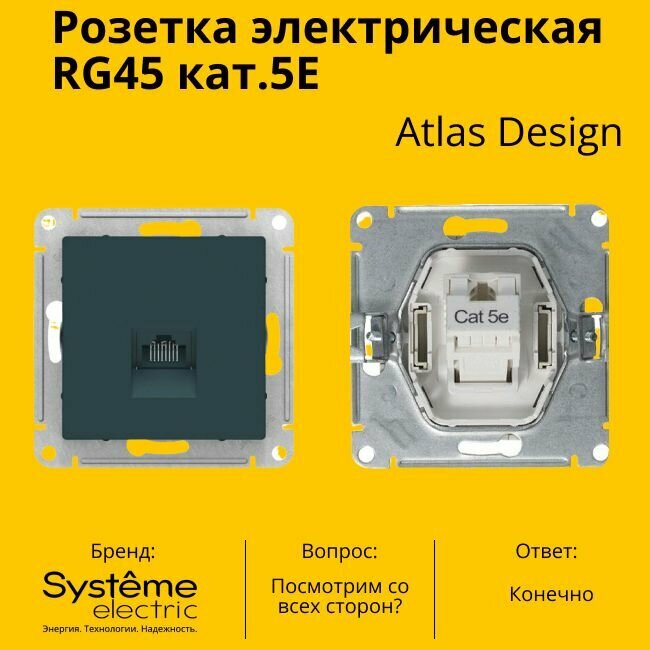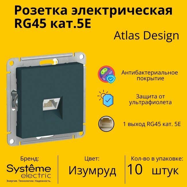 10 цен на Розетка одноместная компьютерная электрическая Systeme Electric Atlas Design RJ45 кат.5E, Изумруд ATN000883 - 10 шт.