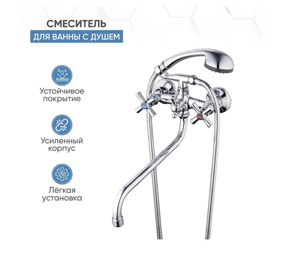 Отзывы на Смеситель для ванны с душем двухвентильный, длинный излив Zegor DFR7-A722, цвет: хром