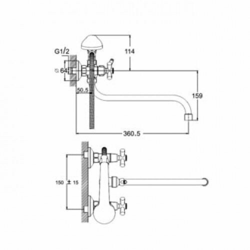 Смеситель для ванны Orange ALFI двухвентильный с душевым набором, глянцевый хром