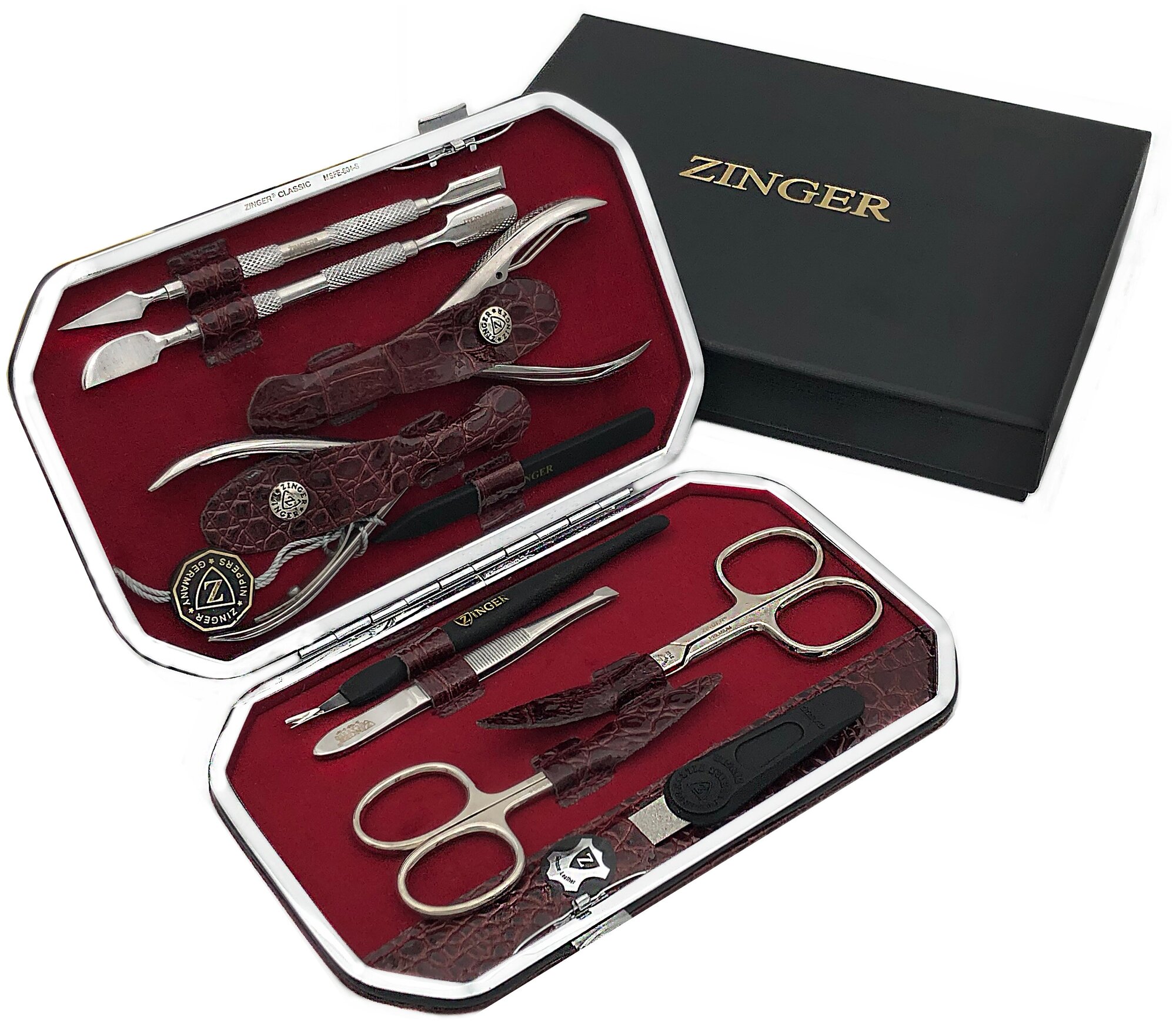 Отзывы на Маникюрный набор MSFE-804-S, ZINGER, 10 предметов, бордовый крокодил