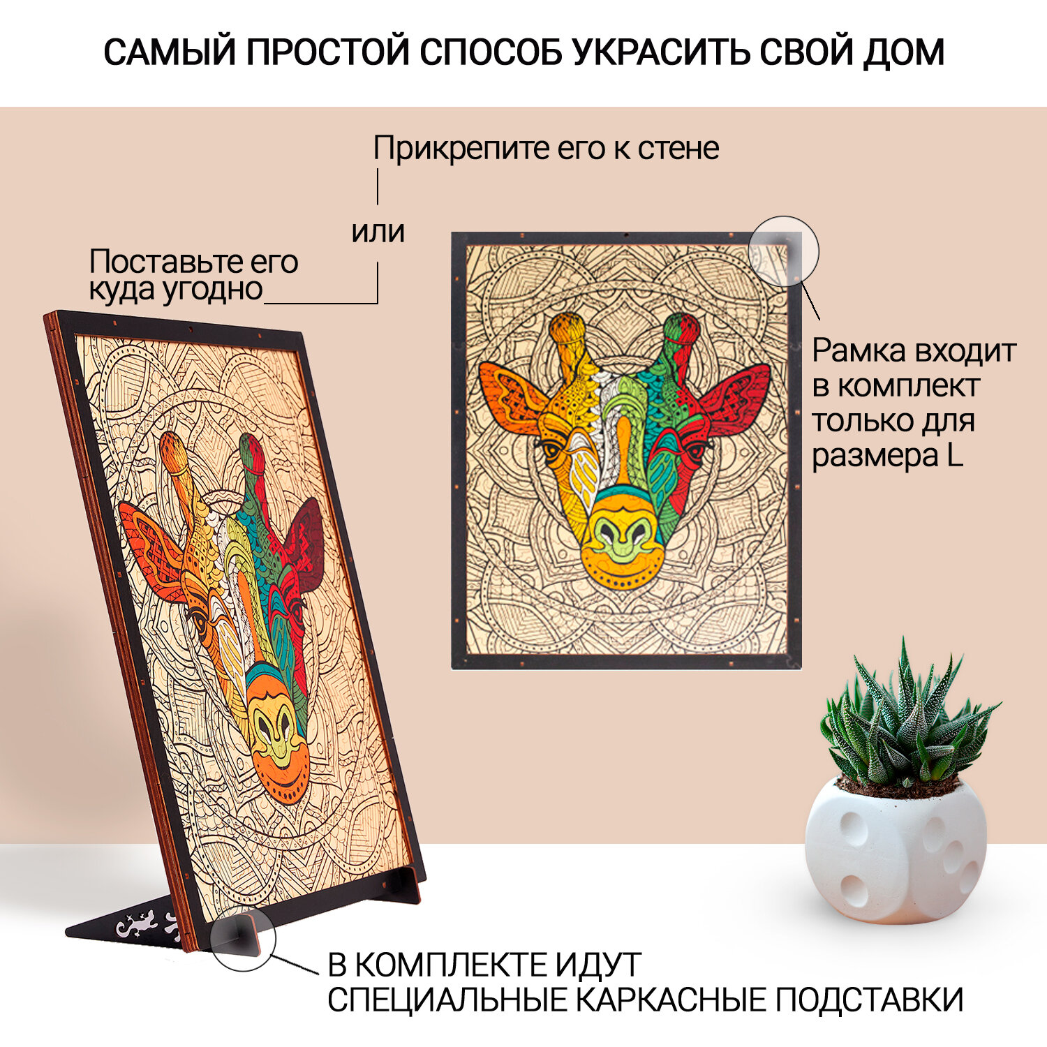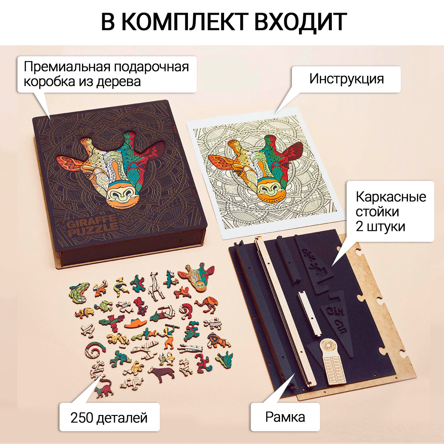 Пазлы / головоломки / Деревянный пазл Piecezz Puzzle "жираф" 28х35 см (большой) 250 деталей развивающие игры / Фигурная мозаика информация: