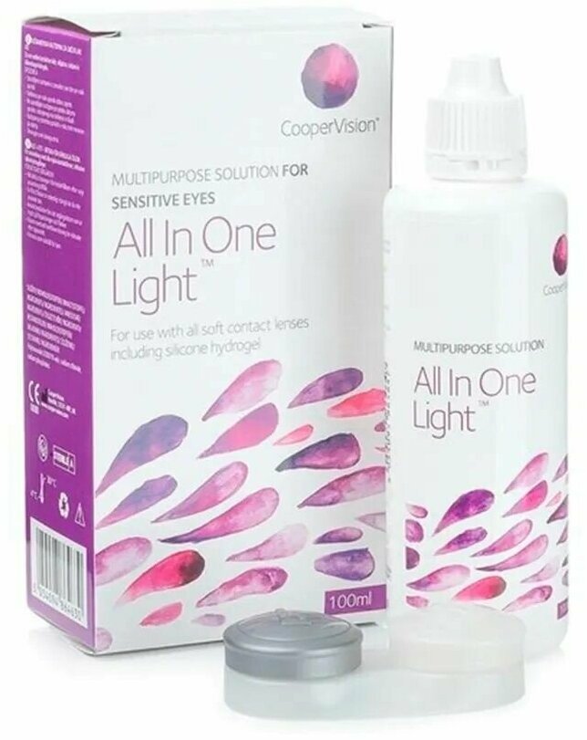 Многоцелевой раствор для контактных линз CooperVision All in One Light (КуперВижн Ол ин Уан Лайт), 100 мл с контейнером для линз информация: