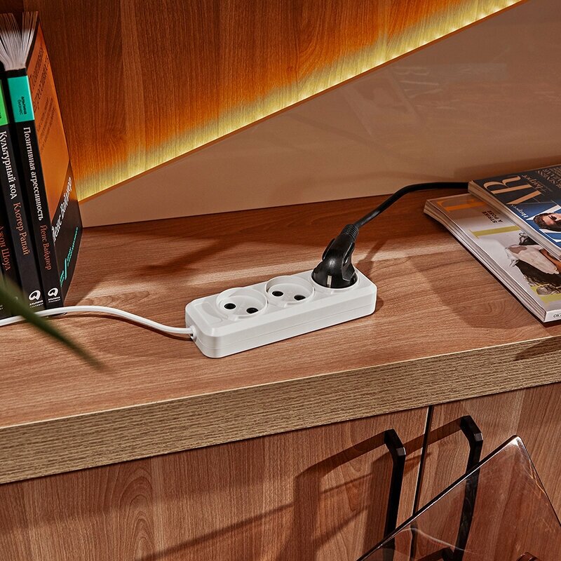 Удлинитель REXANT 3 гнезда, 3 м, 2х0.75 мм², б/з, белый (Сделано в России)