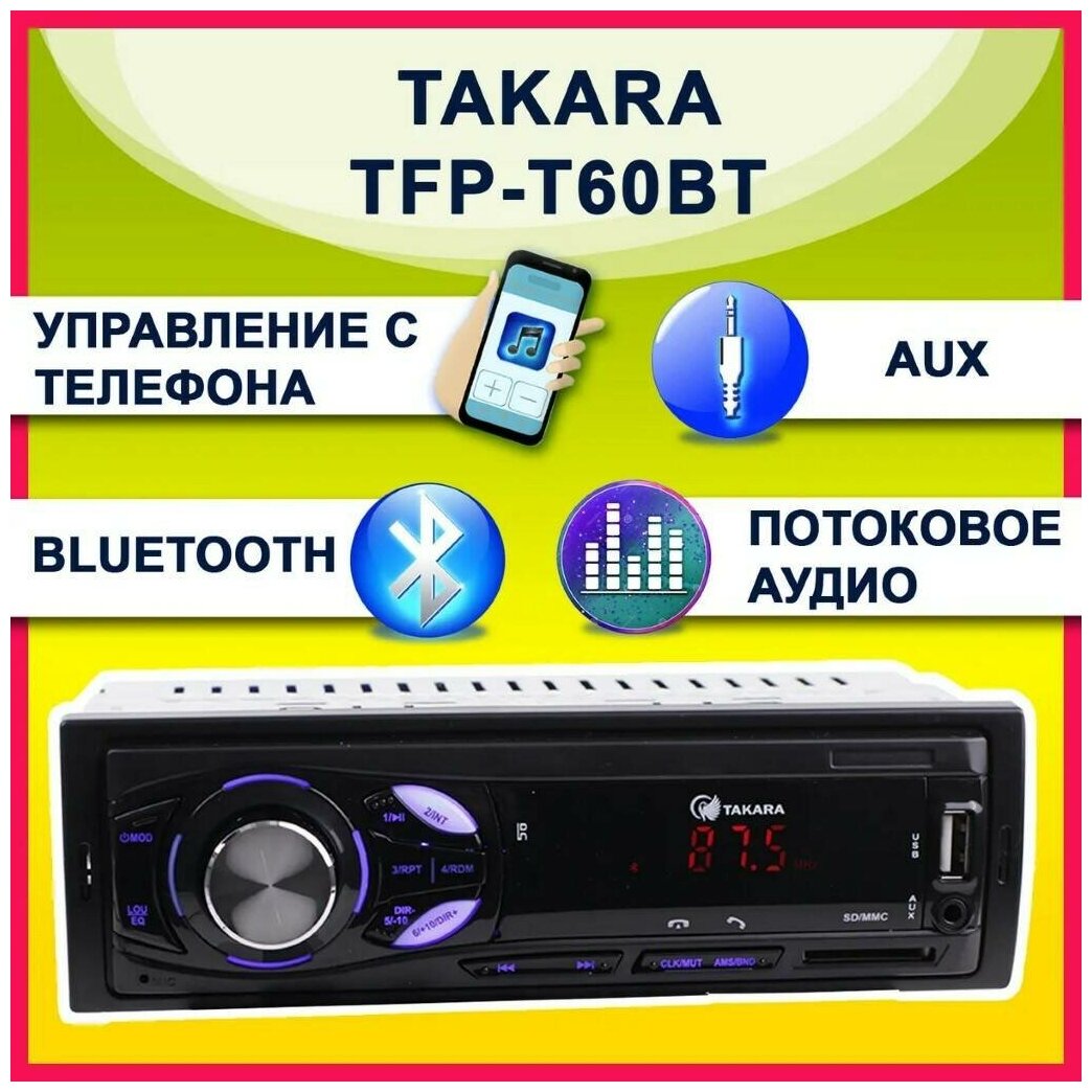 Автомагнитола TAKARA TFP-T60BT (Bluetooth,USB, AUX,SD,MP3) blue (фиолетовый) информация: