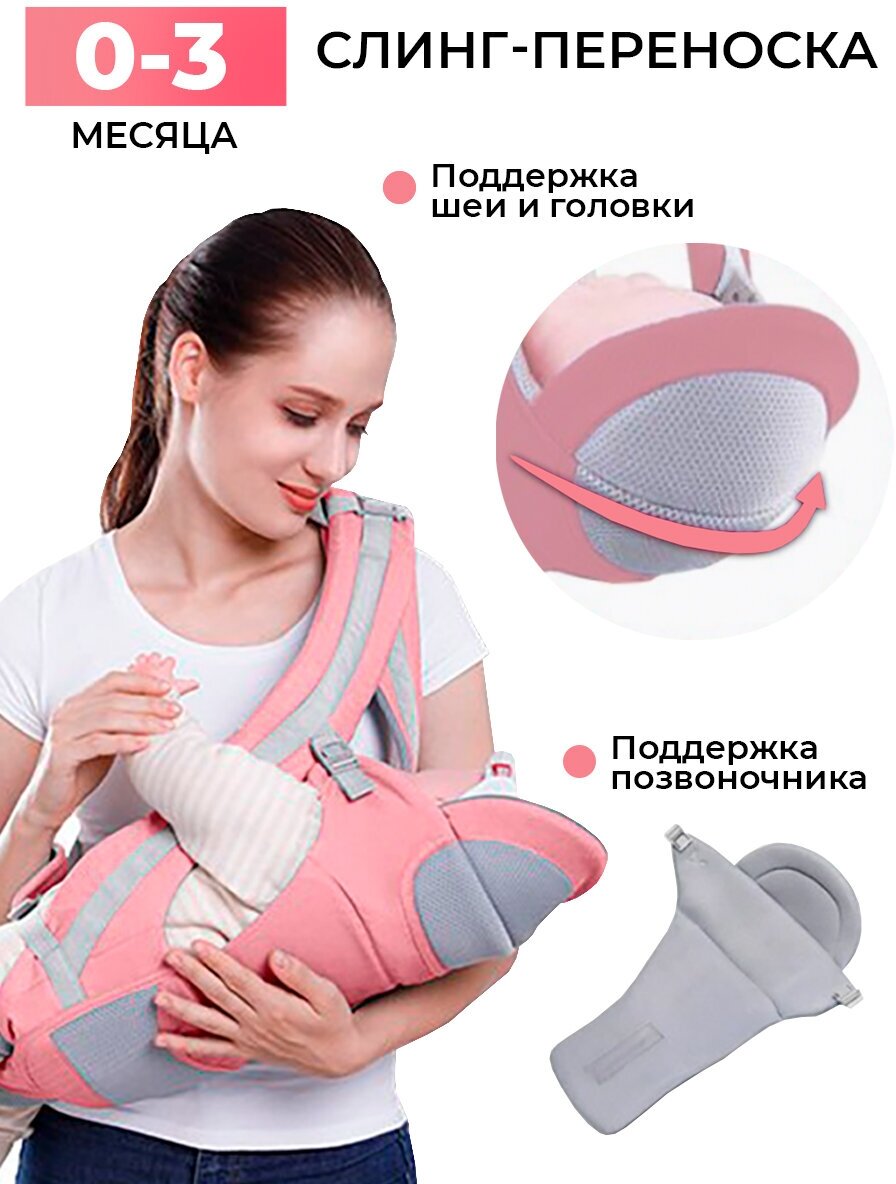 10 цен на Эргорюкзак для малыша, розовый. Хип сит. Кенгуру переноска 0-36 мес. до 25 кг. Слинг для путешествий