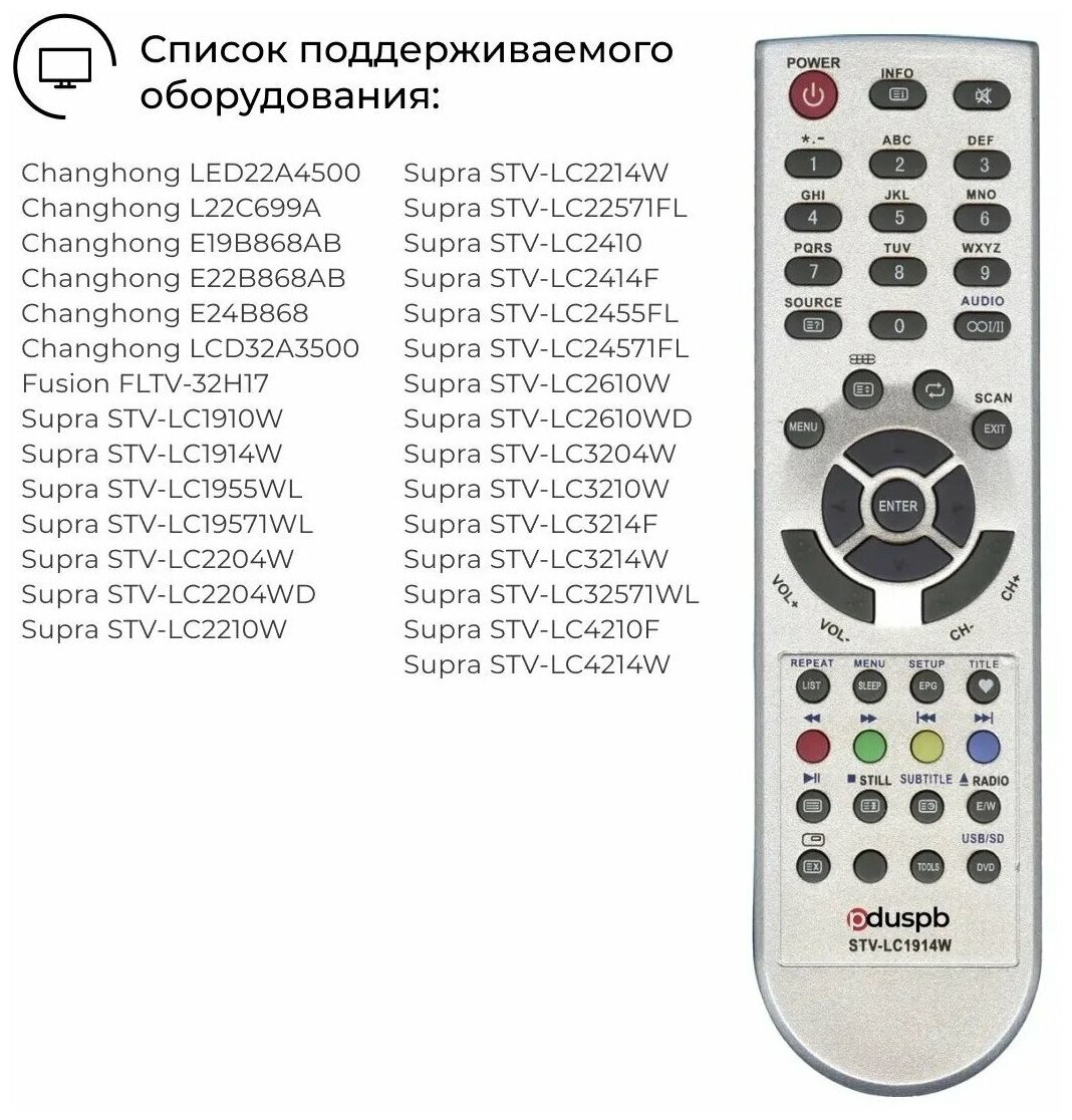 Пульт для телевизора Supra STV-LC19740WL (вариант 2)для данной модели возможен другой вариант пульта, и они не совместимы друг с другом)