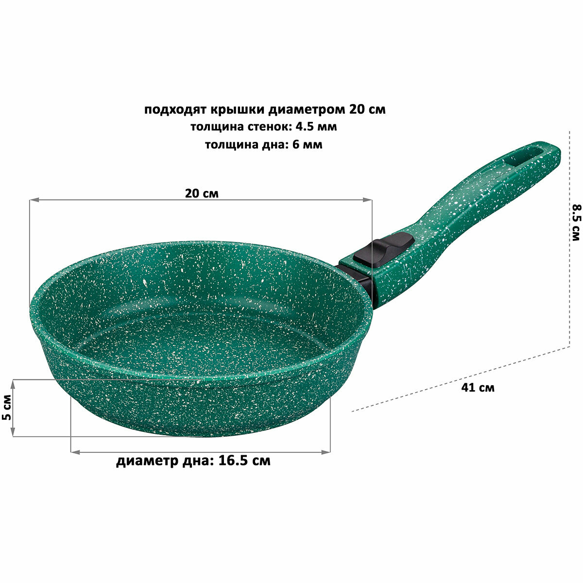 Сковорода глубокая 20 см Elan Gallery гармония вкуса Изумруд, со съёмной ручкой информация: