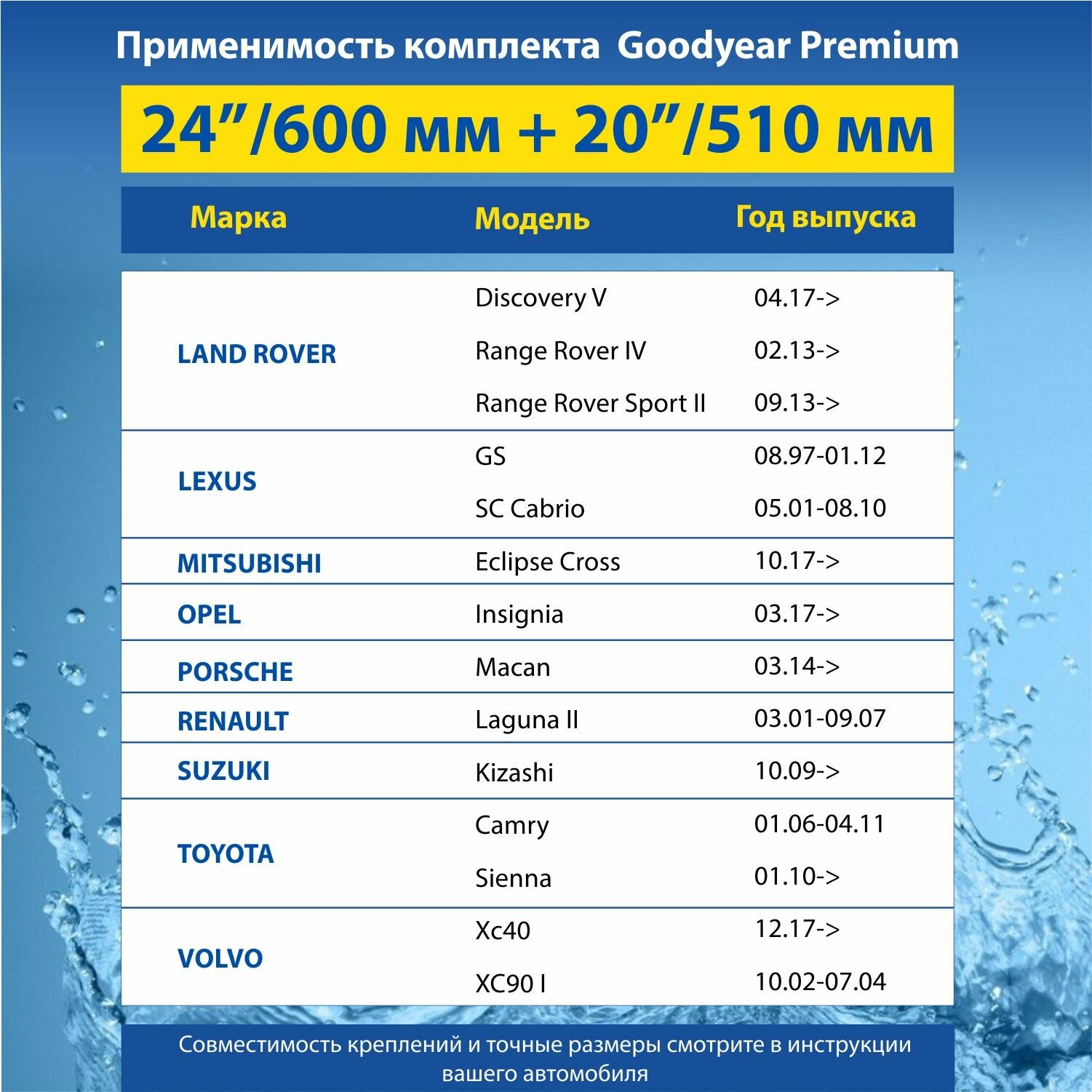 Отзывы на 2 Щетки стеклоочистителя в комплекте (60+51 см), Дворники для автомобиля GOODYEAR для LAND ROVER Range Rover IV (13-нв)/Discovery V (17-нв)