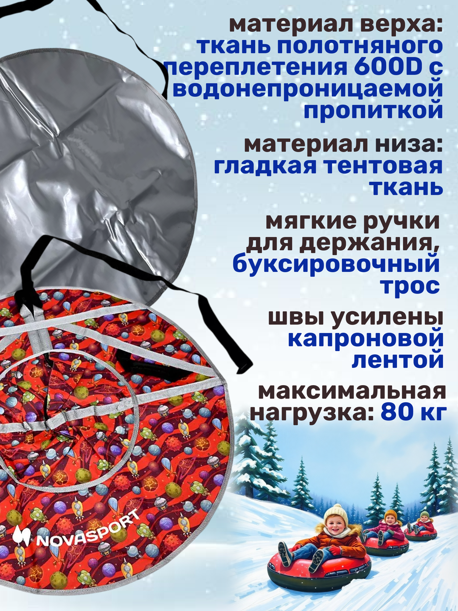 Санки детские надувные ватрушка 90 см NovaSport Тюбинг ткань с рисунком без камеры CH030.090 серые красный космос информация: