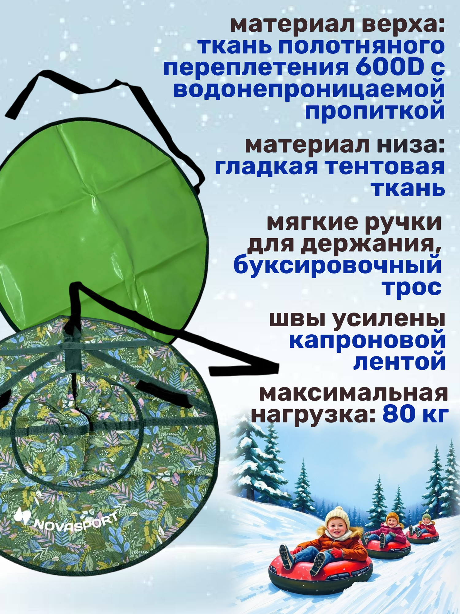 Отзывы на Санки детские надувные ватрушка 90 см NovaSport Тюбинг ткань с рисунком без камеры CH030.090 зелёные листва