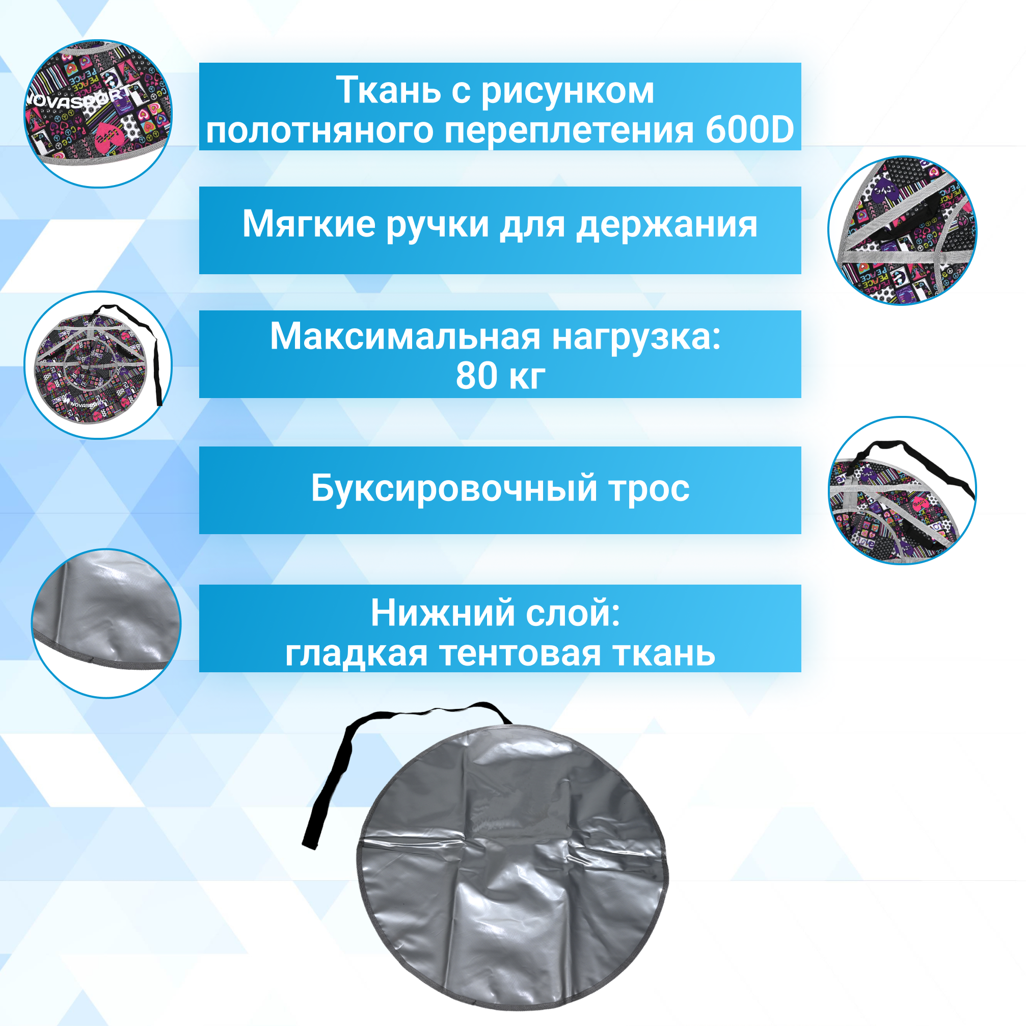 10 цен на Санки надувные с камерой 90 см Ватрушка Тюбинг ткань с рисунком CH030.090 (серый/peace love) NovaSport CH030.090-03-СК