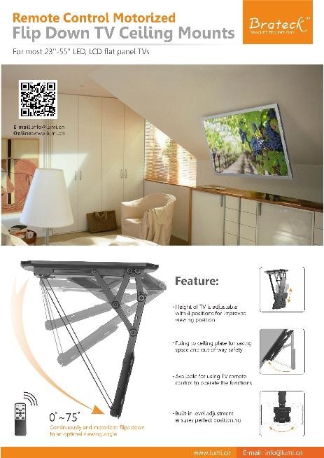 10 цен на Brateck PLB-M 0544 Моторизованный потолочный лифт для дисплея диагональю 23" - 55'' с дистанционным пультом управления (система умного дома Tuya)