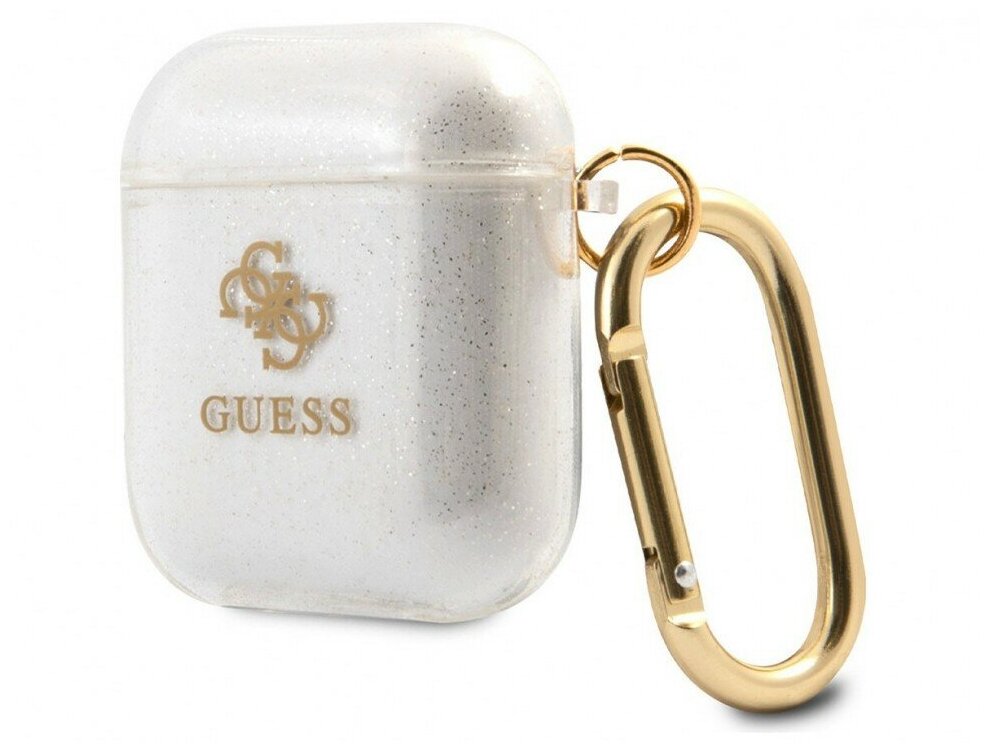 Чехол с карабином CG Mobile Guess TPU Transparent Glitter 4G для AirPods 1&2, цвет Золотой (GUA2UCG4GD)