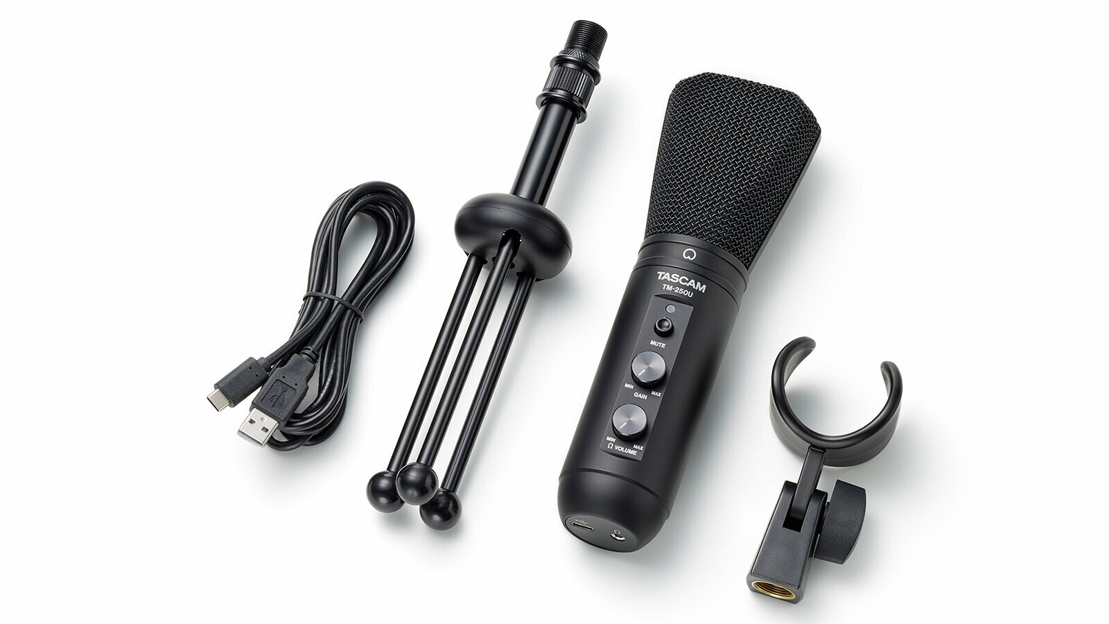 Tascam TM-250U Универсальный USB конденсаторный микрофон, совместим с PC, Mac, iPad и Android, супер-кардиоидный, 20Hz - 20kHz, выход на наушники, в комплект входит микрофон, USB кабель, держатель микрофона и настольная стойка.