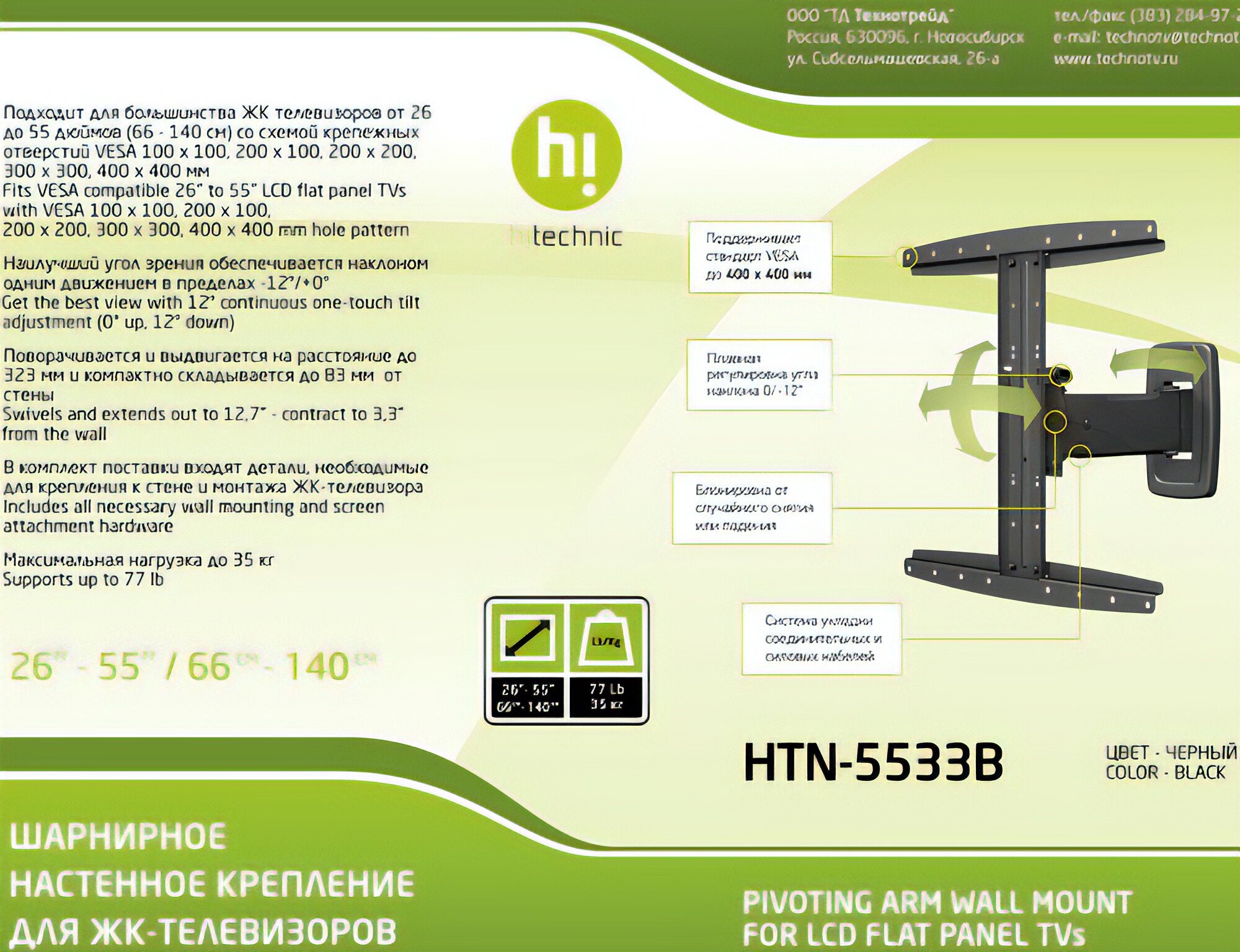 Кронштейн для ТВ наклонно-поворотный Hi HTN-5533B информация:
