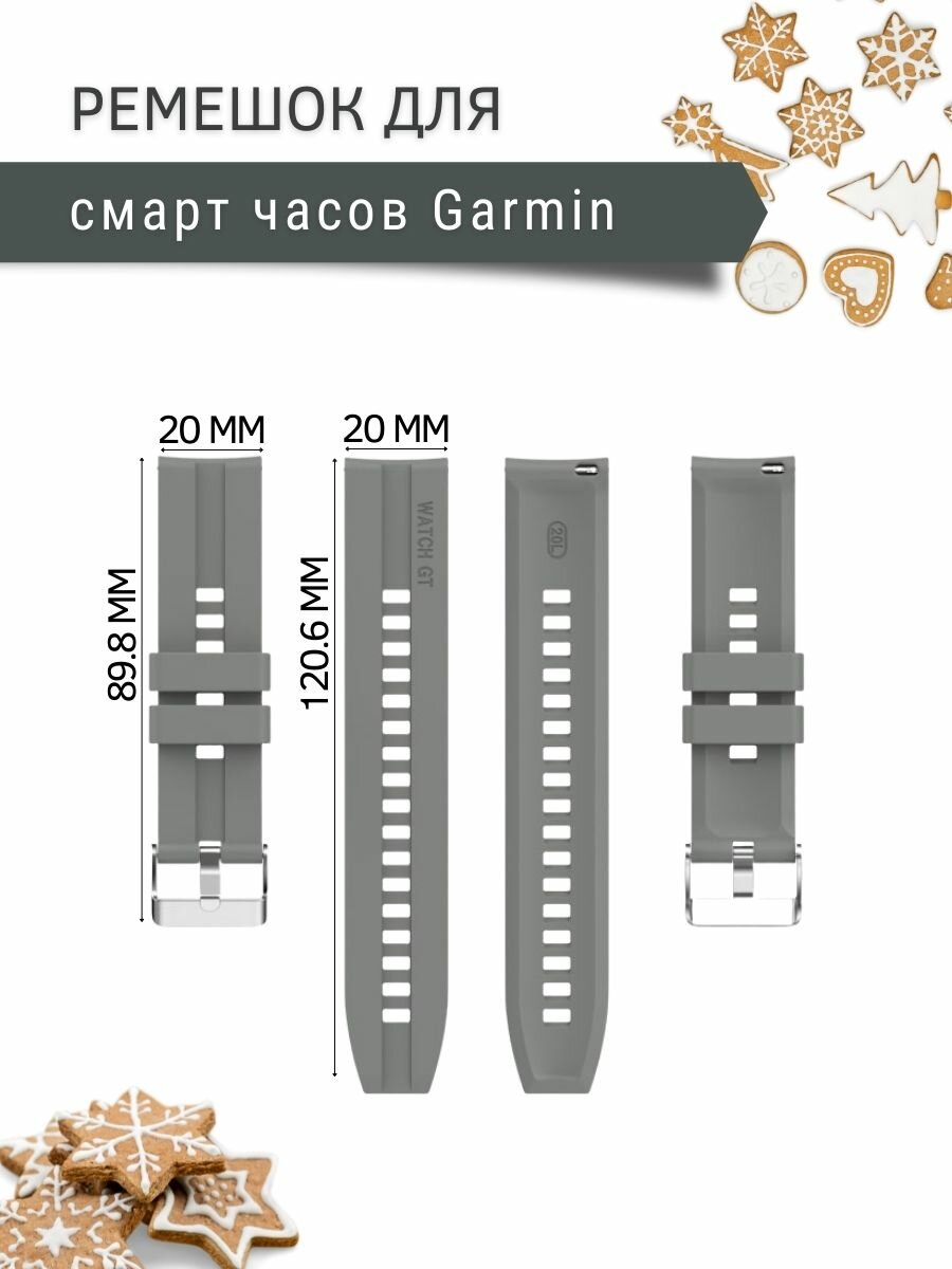 Cиликоновый ремешок PADDA серебристая застежка для смарт-часов Garmin (ширина 20 мм), Gray информация: