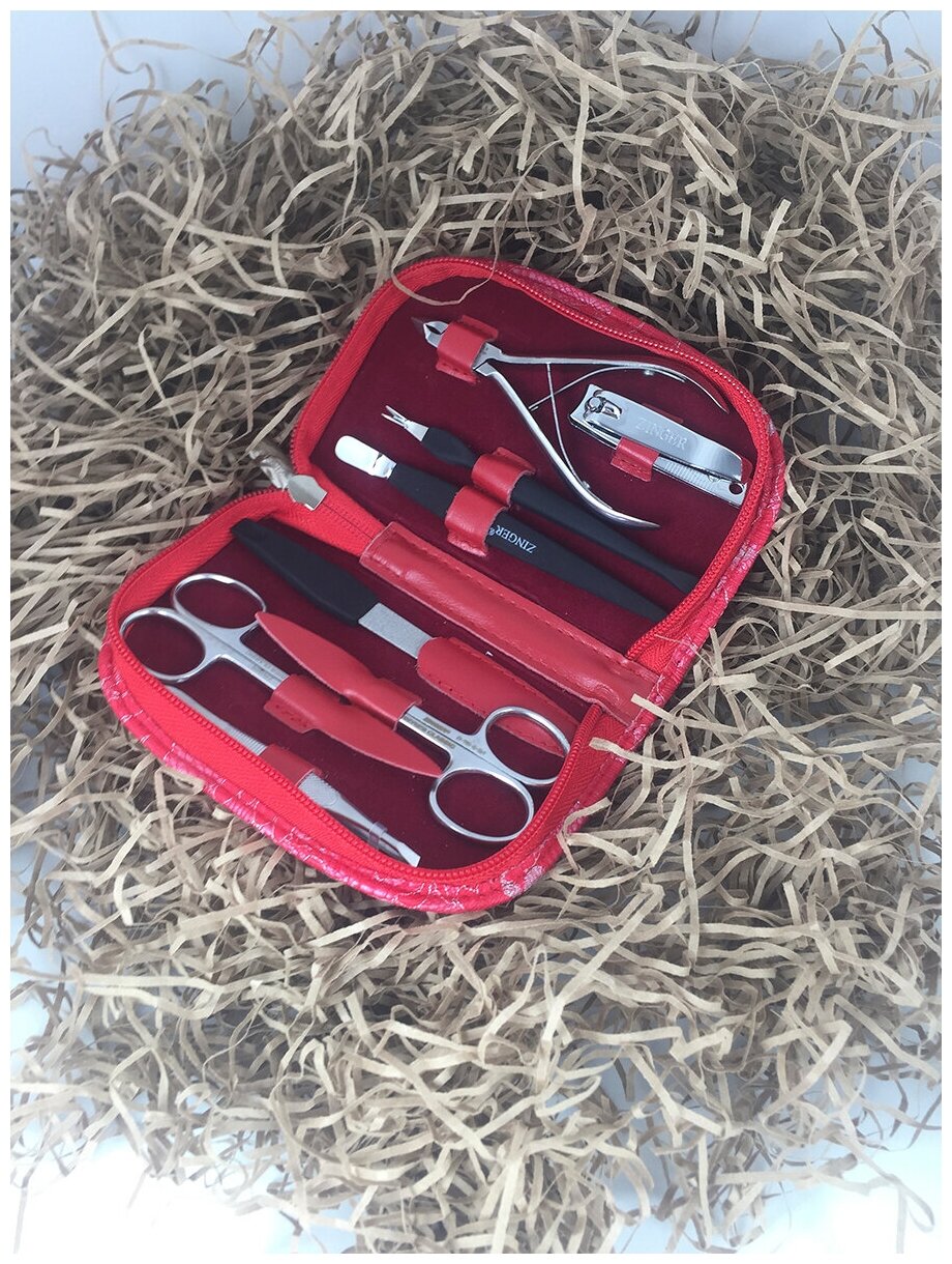 Отзывы на Маникюрный набор на молнии ZINGER, MS-22907 (кожа/кружево), 8 предметов, чехол красный