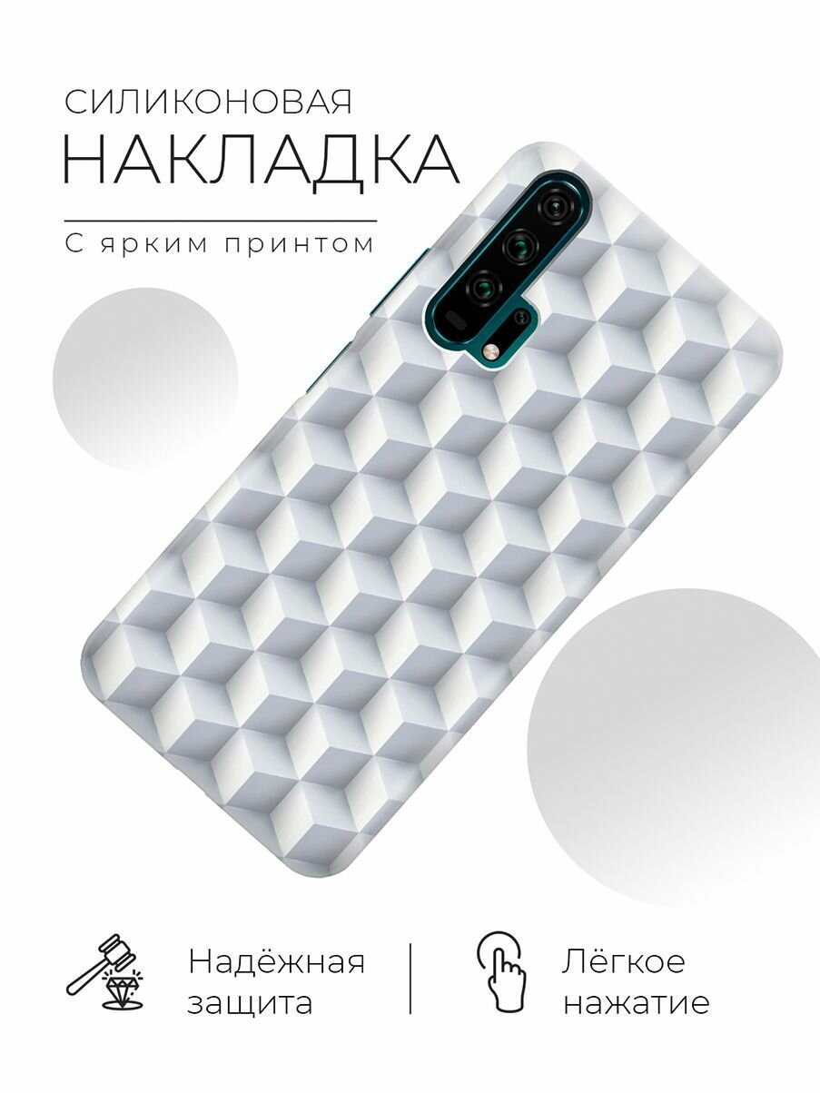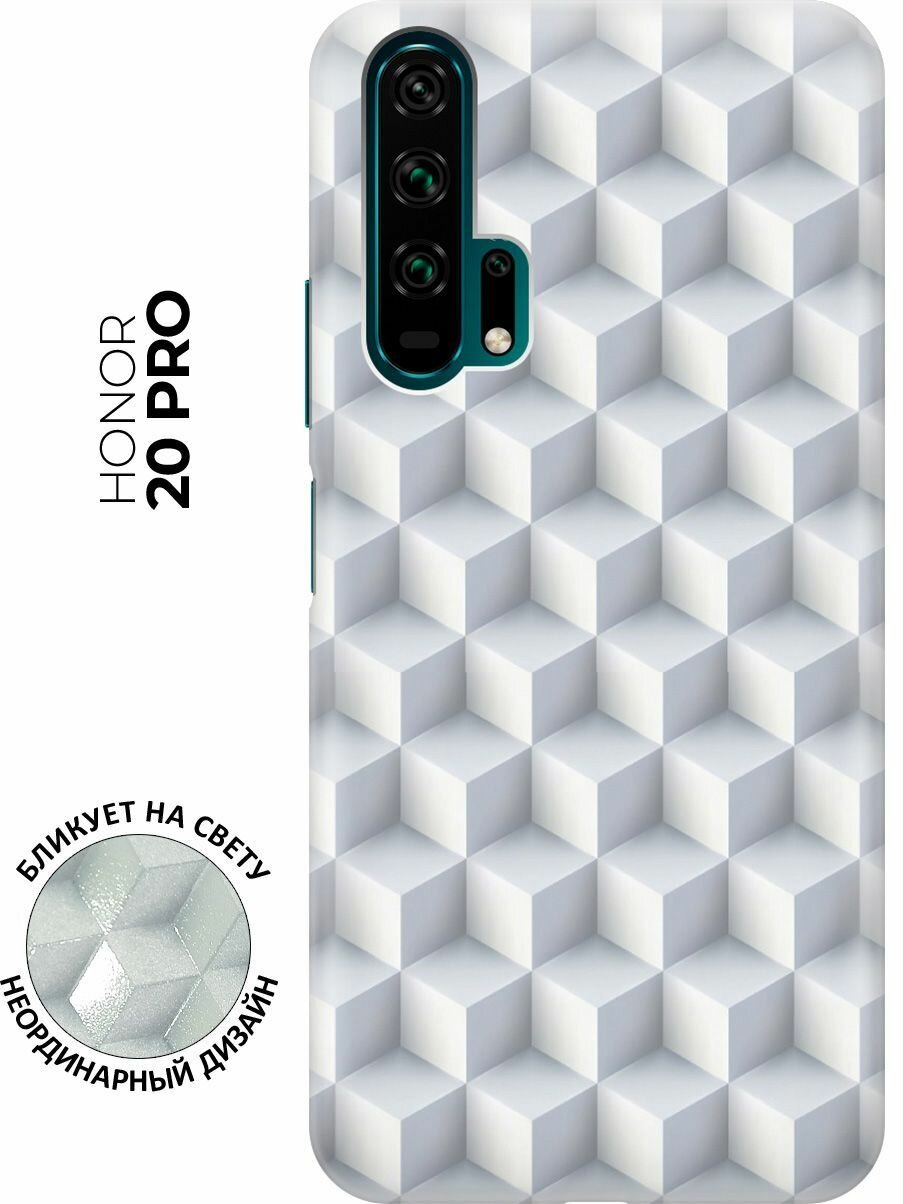 Силиконовый чехол Паттерн из белых кубов на Honor 20 Pro / Хонор 20 Про с эффектом блика информация: