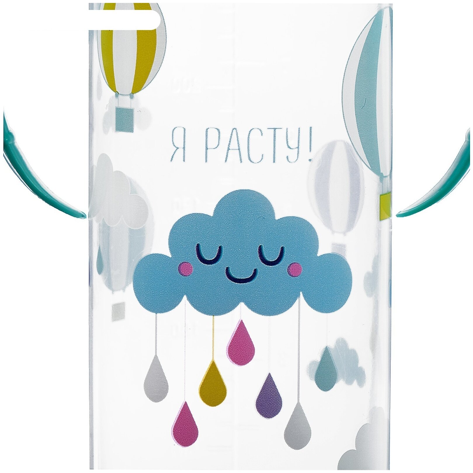 Бутылочка для кормления Mum&Baby "Нежное облачно", классическое горло, с ручками, 250 мл, от 0 мес, цвет бирюзовый (250 мл., Цилиндр - ручки|рисунок)