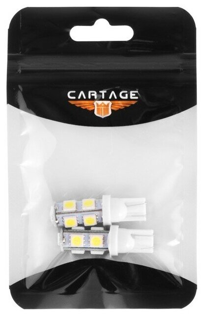 Автолампа светодиодная Cartage, T10 W5W, 12 В, 9 SMD-5050, набор 2 шт информация: