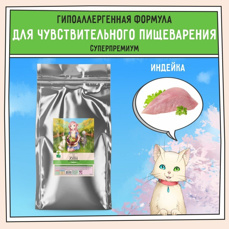 ZILLII Sensitive Digestion Cat Сухой корм для кошек с чувствительным пищеварением Индейка 10кг 5 946 ₽