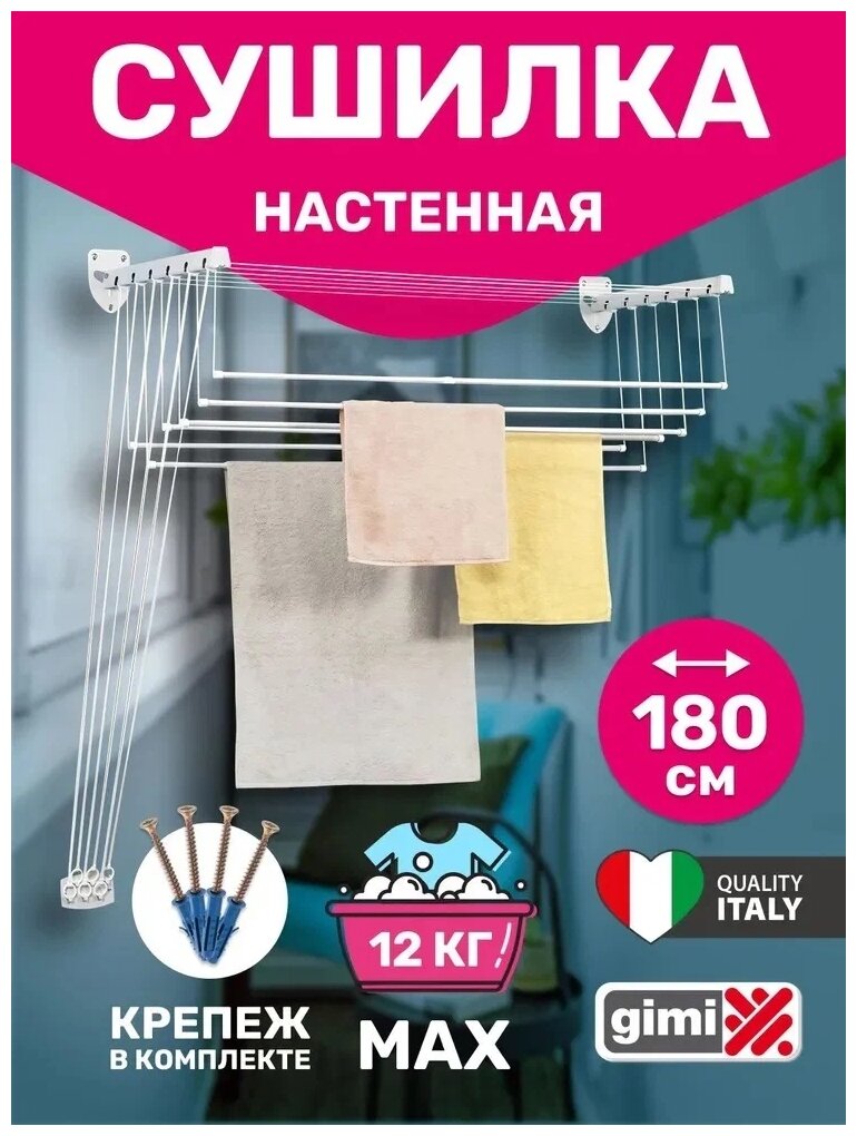Сушилка для белья потолочно-настенная GIMI "Lift 180" информация: