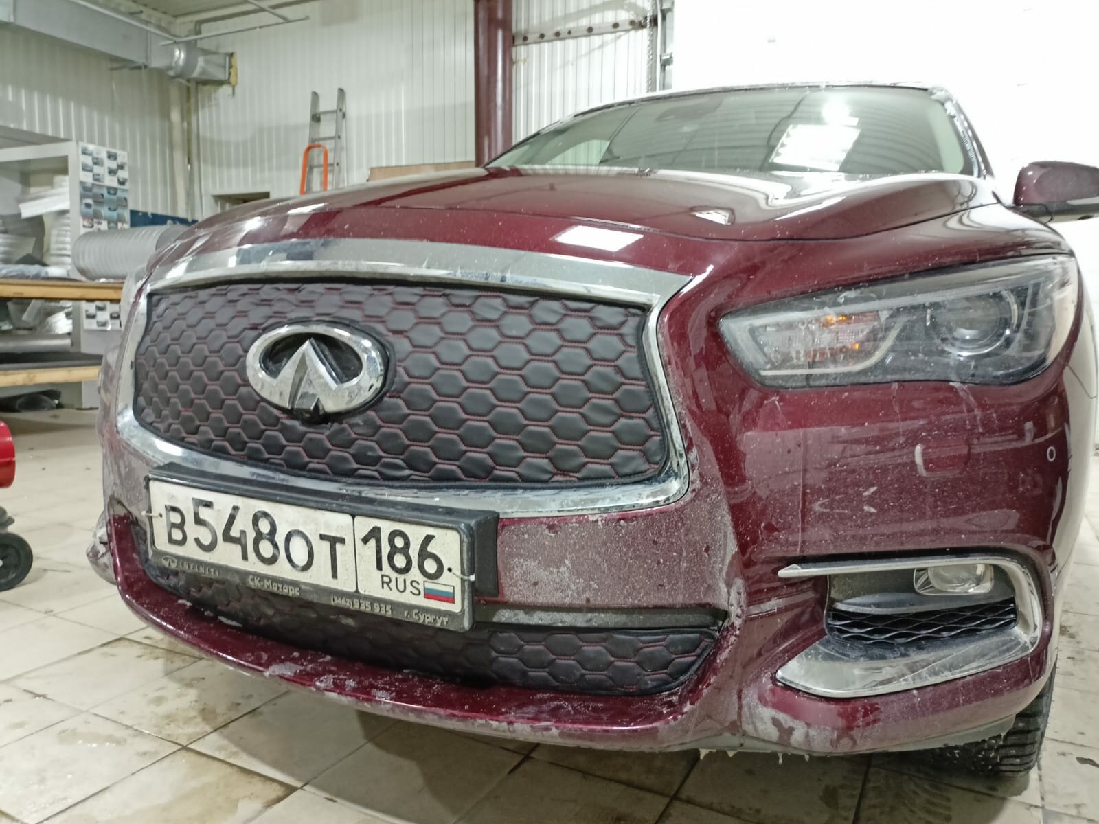Отзывы на Утеплитель решетки радиатора зимний для Infiniti QX60 2014 с рисунком соты(комплект 2 шт)