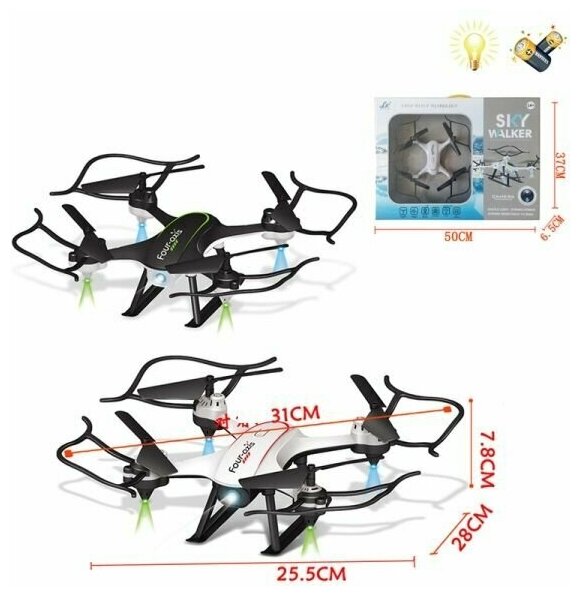 Квадрокоптер дрон 31 см с камерой Wi-Fi 300000 пикс на радиоуправлении, свет, безголовый режим, разворот 360, ускорение информация: