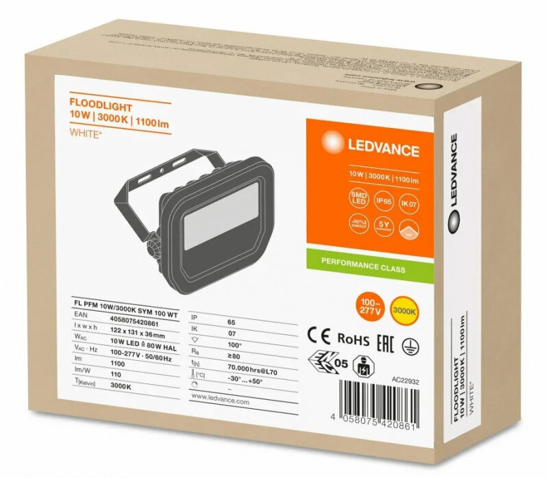 Прожектор FLOODLIGHT LED 10W/3000K WHITE IP65 1 100Лм OSRAM-LEDVANCE информация: