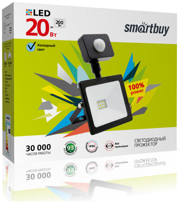 Светодиодный (LED) прожектор с датчиком движения Smartbuy 20W/6500K/IP65 информация: