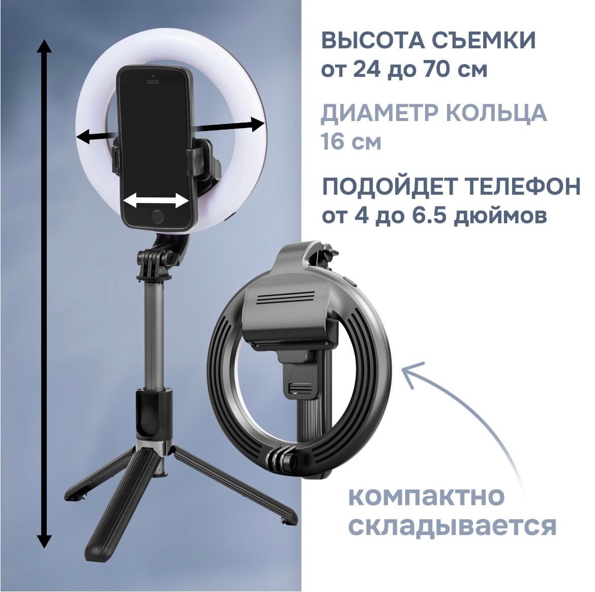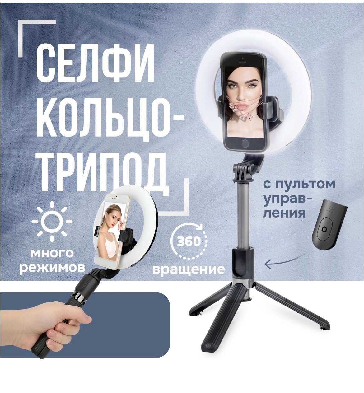 Штатив + селфи кольцо 16 см + пульт / Трипод с пультом Model L07 информация: